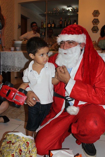 Ho, ho, ho, Feliz natal. Foi desta forma que o papai noel (Atila Maranguape) entrou em nossa festa para a alegria dos pequeninos que estavam ansiosos para receber seus presentes. É claro que a animação não foi apenas deles, pois todos nós viramos crianças quando vemos figura tão ilustre. A residência de minha irmã Eliane ficou pequena pra tanta emoção e felicidade, afinal de contas o que seria do natal sem o papai noel?